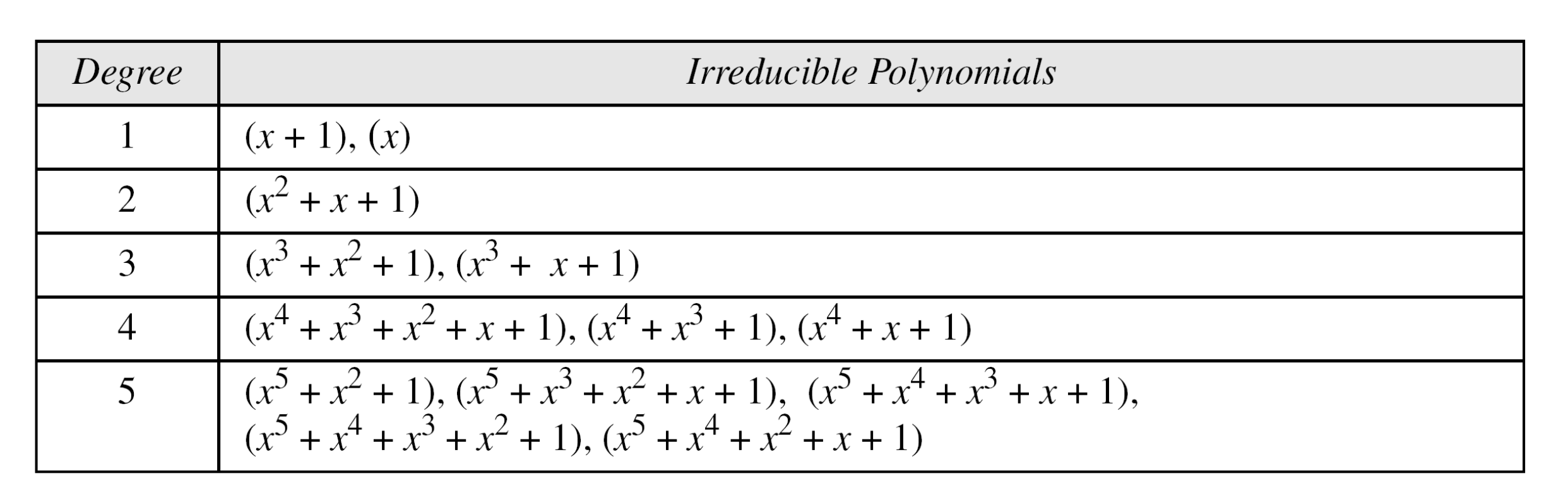기약다항식 하나를 갖고 mod를 해서 나머지 식만 구한다.