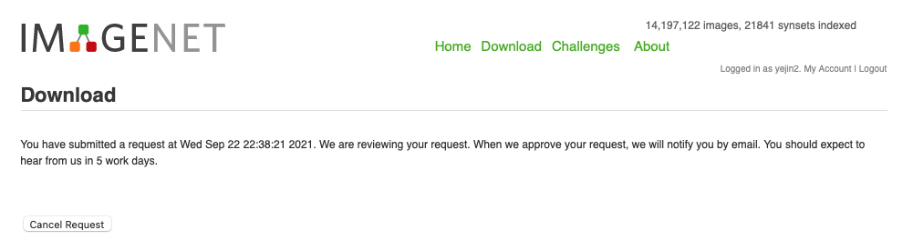 토렌트 아니고 imagenet 사이트에서 받으려면 컨펌도 기다려야 함;;;