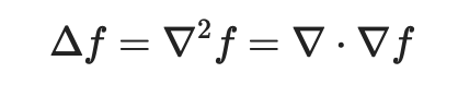 유클리드 공간에서 두 번 미분할 수 있는 스칼라 함수 에 대하여 라플라시안(laplacian)은 에 대한 그레디언트의 발산으로 정의되며 수식으로 표현하면 다음과 같다.