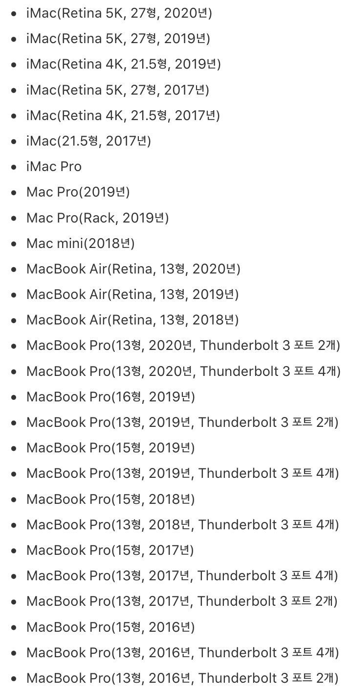 3) Thunderbolt 3 포트 있어야 함